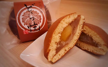 花月堂のどら焼の特徴でもあるお餅はもちろん、さらに栗も丸ごと入っていて、食べ応え満点の1品です。