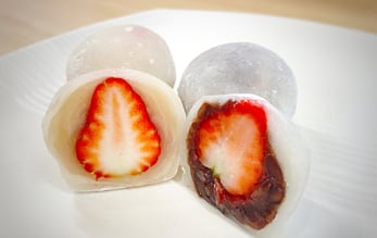 その日仕入れた新鮮ないちごを、毎朝ていねいに餡と求肥で包みます。 白あんと粒あん、どちらがお好みですか?