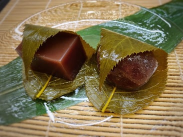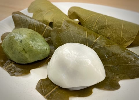 柏の葉は、新芽が出ないうちは古い葉が落ちないことから、「家系が絶えない」という意味があるそうです。当店の柏餅、通常は、白がこしあん入り、よもぎが粒あん入りです。